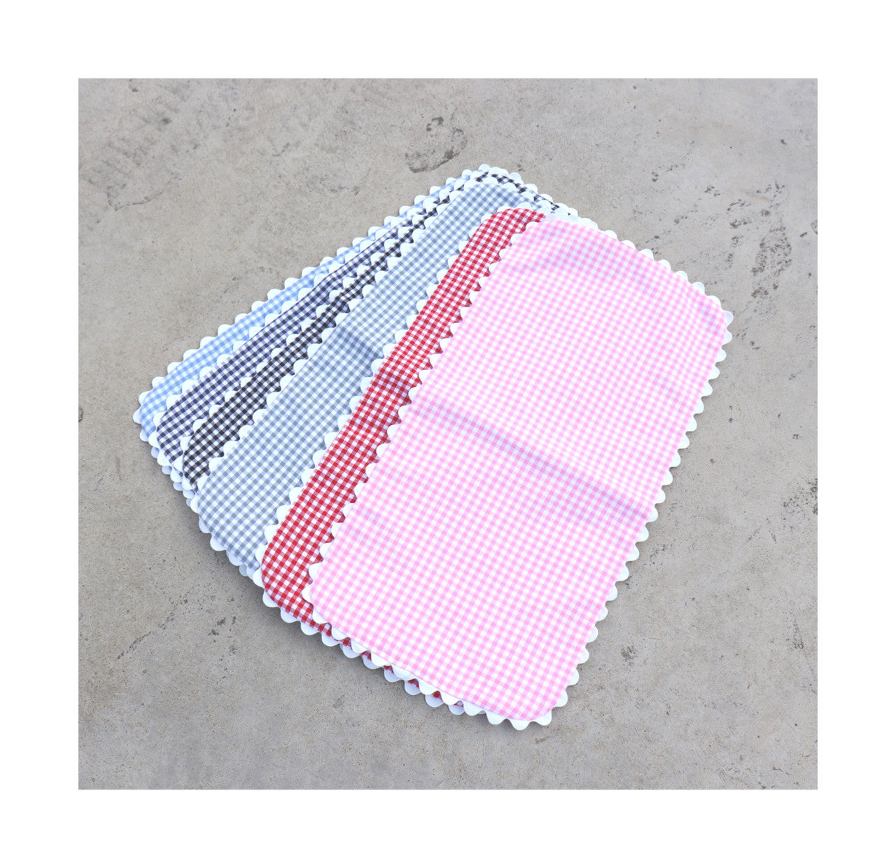 Ric Rac trim gingham bib and burp cloth set in all the colors!!!