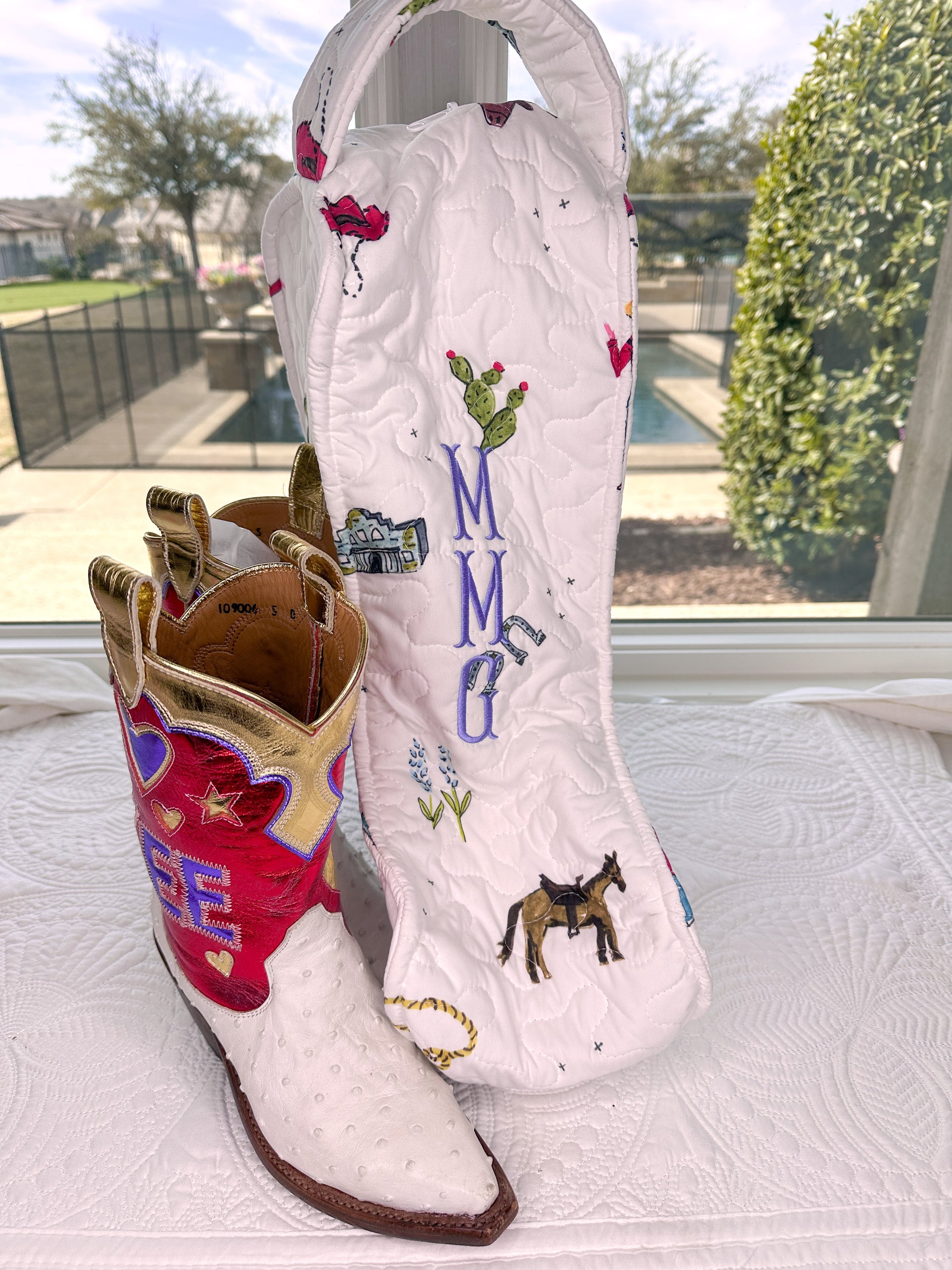 Whether you're a seasoned cowboy or a fashion enthusiast, our Quilted Boot Bag combines durability and style to protect your boots in Texan fashion.