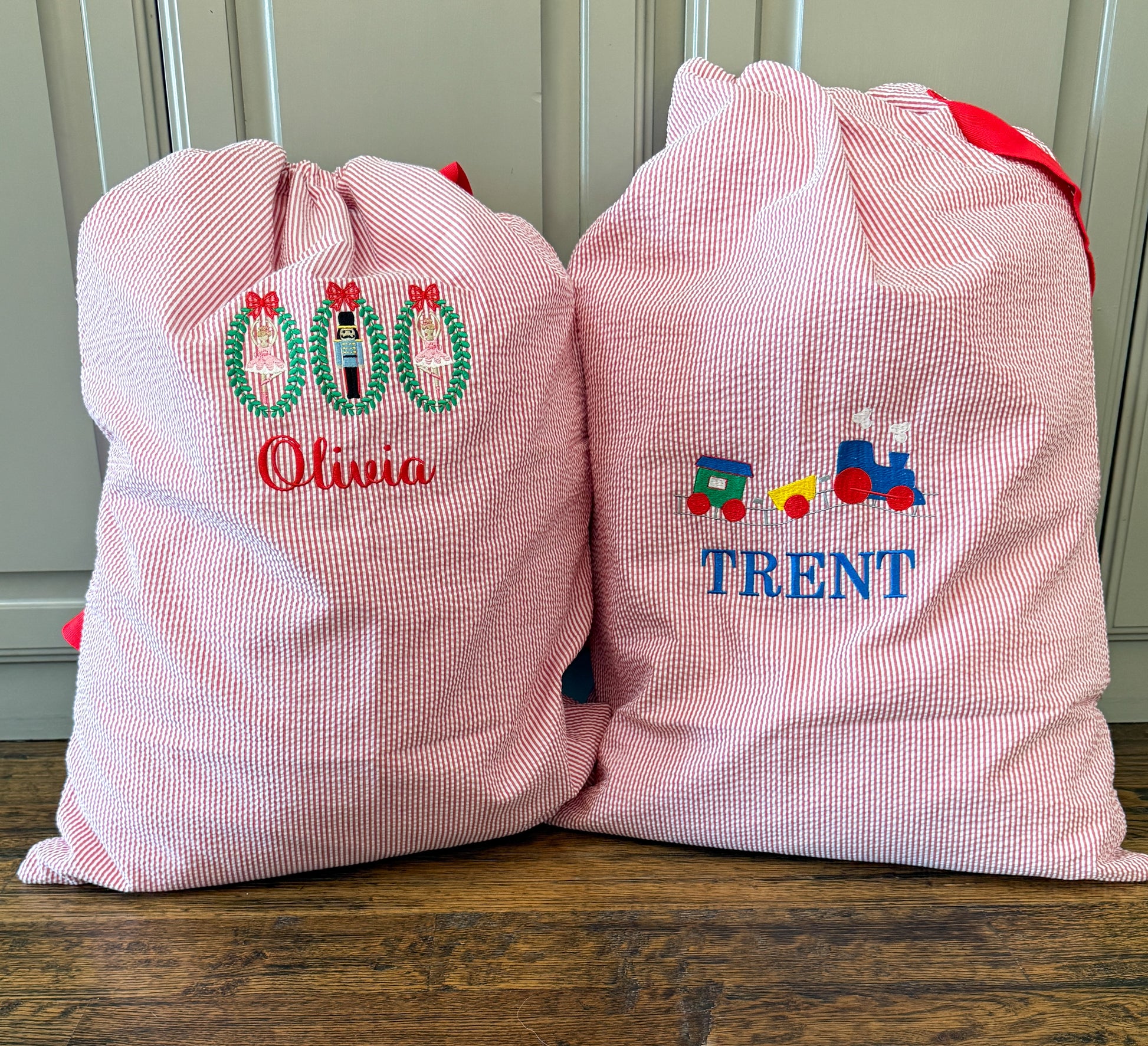 The perfect seersucker bag for Santa to fill for Christmas morning!! Choose any of our wonderful Christmas designs.