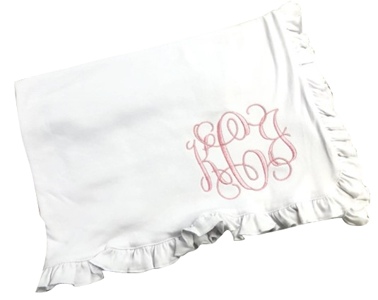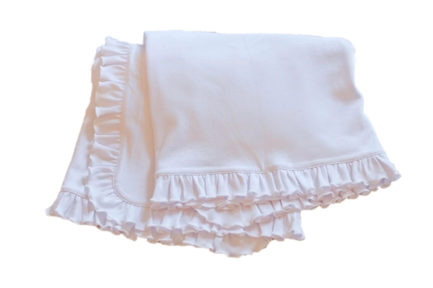 Ruffled Blanket made of 100% Interlocking cotton! Includes standard monogram or font.